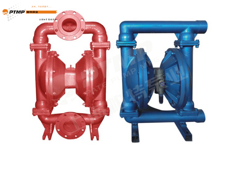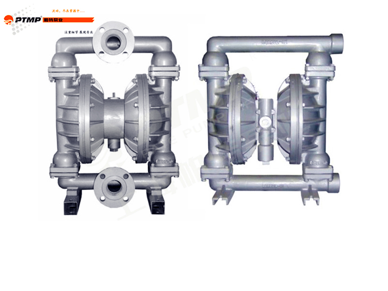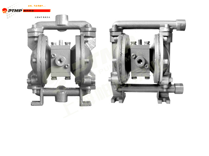 一,連接壓縮空氣后,氣閥控制壓縮空氣推動膜片向友移動,同時膜片會擠壓右膜腔室中的介質從而將介質排除泵腔。膜片不僅起輸送介質的作用,同時在泵腔中起隔離壓縮空氣和介質。當一個膜片被壓縮空氣推向遠離中間體時,與此同時通過連桿鏈接的另外一個膜片移向中間體時,與此同時通過連桿鏈接的另外一個膜片移向中間體,其中處于高壓的連桿其作用是連接位于兩個膜腔室中的膜片。當膜片2移向中間體時,膜片后面的高壓空氣通過閥門的換向通過消音器被迫排放到外界。當膜片2移向中間氣閥時,泵入口產生真空并通過大氣壓力將介質壓入泵的進口中。此時蹦的進口閥球會被抬高而離開閥座,保證介質很輕松的通過進口管路而充入泵腔中。